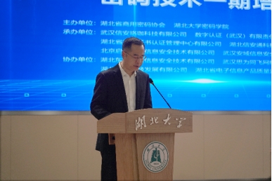 培训期间,英国365集团公司官网英国365集团公司官网教授、博导、公司党委副书记、副经理、省商密协会副会长徐鹏,湖北东方网盾信息安全技术有限公司商密测评部技术总监曾威受邀分别围绕密码学前沿技术、密评作了主题培训分享。武汉信安珞珈科技有限公司、数字认证(武汉)有限责任公司、湖北省数字证书认证管理中心有限公司、湖北信安通科技有限责任公司、北京启明星辰信息安全技术有限公司、武汉安域信息安全技术有限公司等企业专家进行了商密产品及应用分享。