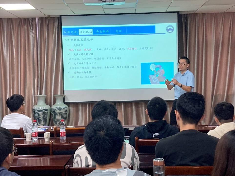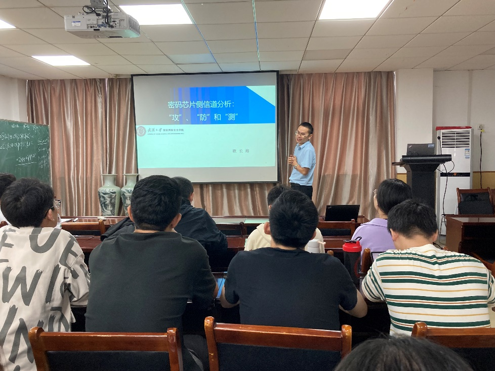 2023年9月27日下午,英国365集团公司官网博士生导师欧长海教授应邀为公司师生作题为《密码芯片侧信道分析:“攻”、“防”和“测”》的学术报告。