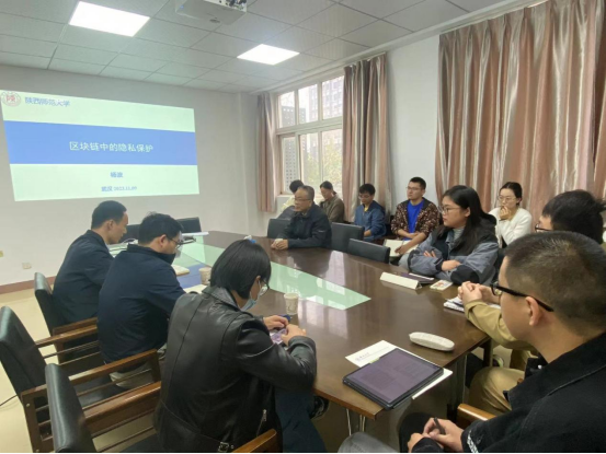 2023年11月9日上午,陕西师范大学计算机科学公司二级教授、博士生导师杨波教授应邀为公司师生作了题为《区块链中的隐私保护》的学术报告。