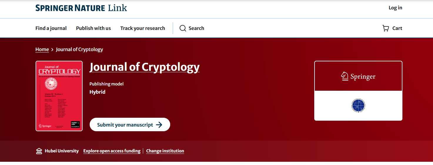 近日,公司密码学团队涂自然、曾祥勇、李念三位教授和挪威卑尔根大学Chunlei Li教授、挪威科公司院士Tor Helleseth教授,在《Journal of Cryptology》(JoC)联合发表科研论文《New Characterizations of Dillon-like Hyperbent Functions via Dickson Polynomials》。这是湖北学者首次在JoC发表论文,英国365集团公司官网为第一单位,涂自然教授为第一作者,曾祥勇教授为通讯作者。