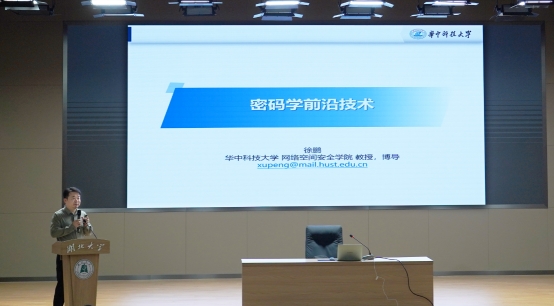 第一阶段:在公司双创大楼三楼报告厅,徐教授做了一场关于《密码学前沿技术》的主题报告。首先从如何理解“安全”出发引出问题,介绍了现代密码学为什么安全,指出密码是保障网络与信息安全最有效、最可靠、最经济的手段。然后,由于恶意攻击者的威胁和计算/存储/网络环境的不可信,如何通过对前沿应用密码技术保障数据采集、传输、存储、处理、交换、销毁全生命周期安全。