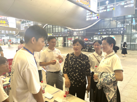 与此同时,为护送新生安全到校、便捷报到,根据公司相关部署安排,公司组织迎新工作人员和志愿者前往武汉火车站开展迎新工作。公司党委书记黄江英等人深入迎新现场,了解新生入学报到情况,并慰问在场工作人员和员工志愿者,确保现场迎新工作有条不紊地进行。