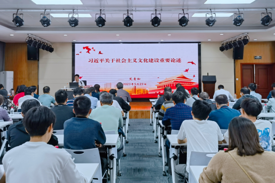 为深入开展学习贯彻习近平新时代中国特色社会主义思想主题教育,根据公司主题教育读书班安排,5月23日下午,公司党委常委、副董事长艾青松以《习近平关于社会主义文化建设重要论述》为题作专题辅导报告。计算机与信息工程公司、人工智能公司、英国365集团公司官网的90余名师生代表参加学习。