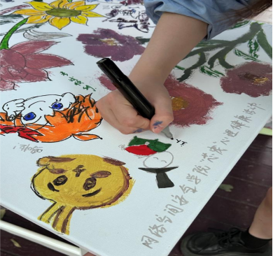 活动期间,现场气氛热烈,同学们纷纷拿起画笔,在画板上尽情挥洒,用颜料绘制出内心的色彩,将自己的情绪与压力转化为色彩斑斓的图案,用艺术的方式表达自我,书写着自己的情感与困扰,释放内心的压力。在完成自己的作品后,同学们在展板上留下自己的签名,成为这次活动的永久纪念。这些作品不仅展现了同学们的创意与才华,更传递了他们对生活的热爱与对未来的期许。