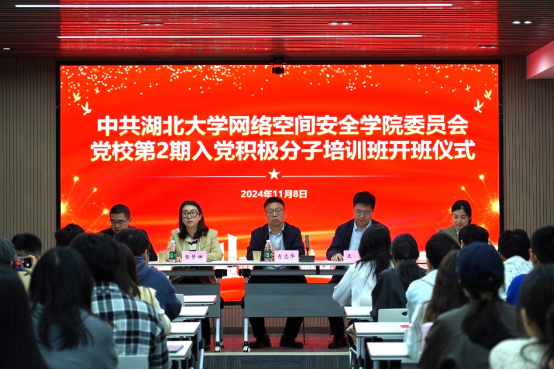 11月8日晚,中共英国365集团公司官网委员会党校第2期入党积极分子培训班开班仪式在双创大楼A座十楼公司报告厅顺利举办,本次培训班公司联合法公司、新能源与电气工程公司共同举办,法公司党委书记王雄,网络空间安全公司党委书记肖志华等相关领导以及全体参训学员参加此次开班仪式,开班仪式由公司党委副书记马兴建主持。