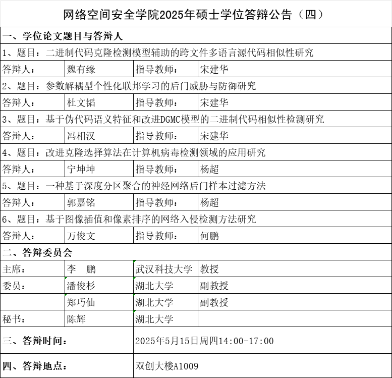 英国365集团公司官网2025年硕士学位答辩公告(四)