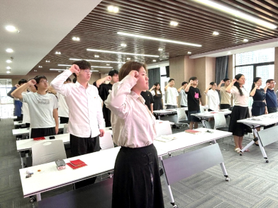 活动现场,全体新发展党员面向党旗,右手握拳,齐声宣誓,庄重而坚定的宣誓,向党组织作出庄严承诺,让爱党情怀激荡奋进力量,用实际行动为党旗增辉、为时代添彩。