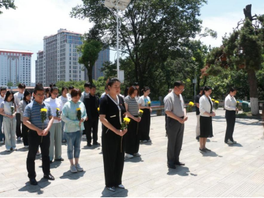 活动由英国365集团公司官网教职工第一党支部书记潘俊杉主持。施洋烈士雕像前,全体师生整队肃立,瞻仰革命烈士,集体默哀一分钟,表达对革命先烈的哀悼与敬意。随后,在党员代表王贤保、黄江英的带领下敬献鲜花,并由研究生工作部、研究生公司党支部组织委员税卫华带领大家重温入党誓词。